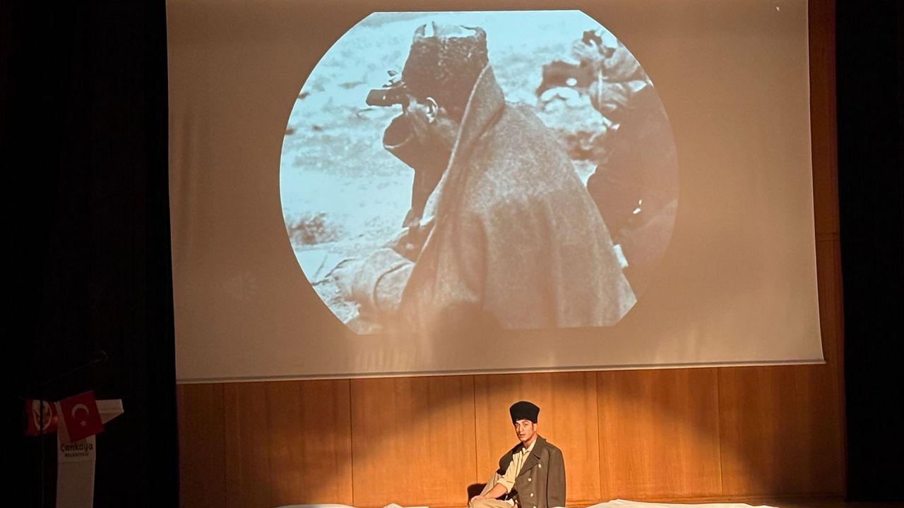 Sakarya Meydan Muharebesi’ni anlatan bir video gösterimi sonrası sahneye çıkan Erdem Eren, güçlü yorumuyla şiir dinletisi gerçekleştirdi.