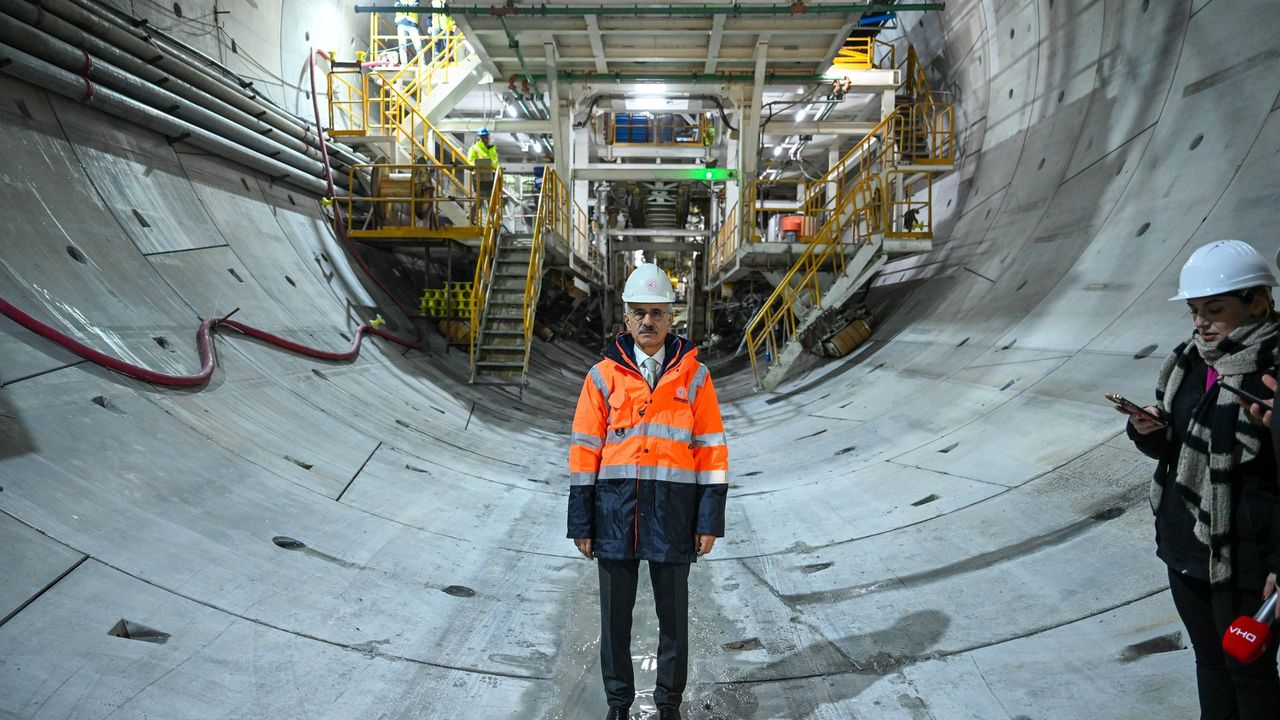 Tünelde gazetecilerin sorularını yanıtlayan Bakan Uraloğlu, 'Arkamda gördüğünüz yapı yaklaşık 100-110 metre civarında bir yapıdan bahsediyoruz. 12-12,5 ayda 13 ayda bir makine 5 kilometre tünel kazmış olacak. Gerçekten kıymetli. Ve bir günde de ortalama 15-17 metre kazarken bir günde 34 metrelik bir rekor yakaladık. Dünyada bildiğimiz daha bunun yükseği yok. 34 metre bakın bir makine 34 metre kazdı, segmentlerle zemini destekledi ve yolumuza devam ediyoruz. Peki diğer tarafta da diğer tüpte de NAT'ım dediğimiz makinelerle kazı yöntemiyle devam ediyoruz. İnşallah önümüzdeki yıl bitmeden tünelimiz bitirerek Kilyos'tan Sarıyer'e 35 dakika süren seyahati sadece 5 dakika indirmiş olacağız. Ve Allah korusun olağanüstü hallerde, depremde de hem acil yardım girişlerini, müdahale ekiplerini, kurtarma ekiplerini hem de İstanbul'un olası bir tahliyesinde doğrudan Kuzey Marmara gibi ana artere ulaşmalarını biz sağlamış olacağız' açıklamasında bulundu.