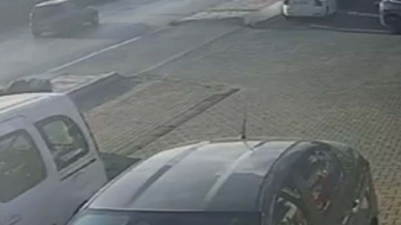 Kaza anı ise bir işyerinin güvenlik kamerası tarafından kayıt altına alındı.