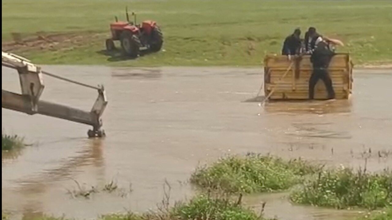 Olay, öğle saatlerinde ilçeye bağlı Ensar Mahallesi'nde yaşandı. İlçede etkili olan sağanak sonrasında debisi artan dereden traktörle geçmeye çalışan 3 kişi, suyun ortasında mahsur kaldı. Çevredekiler, durumu jandarma itfaiye ve sağlık ekiplerine ihbar etti. İhbarla bölgeye gönderilen ekipler, akıntıya rağmen titiz bir çalışma yürüttü. İş makinesine bağlanan halatla beraber traktöre ulaşıldı. Mahsur kalan 3 kişi, daha sonra güvenli olarak tahliye edildi. Sağlık ekipleri tarafından kontrolleri yapılan 3 kişinin durumunun iyi olduğu aktarıldı.
