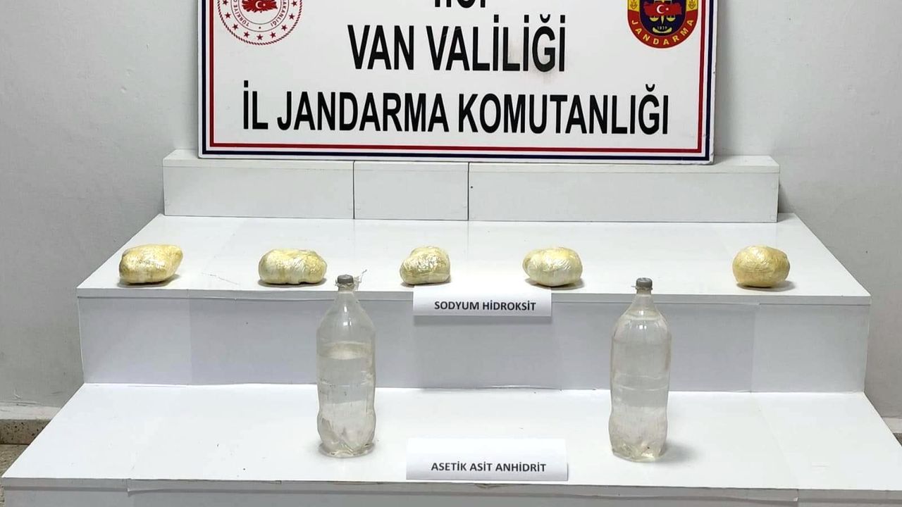 İl Jandarma Komutanlığı Narkotik Suçlarla Mücadele Şube, Kaçakçılık ve Organize Suçlarla Mücadele Şube, İstihbarat Şube müdürlükleri ile Başkale Jandarma Komutanlığı ve Başkale Komando Tabur Komutanlığı ekiplerince, Başkale ilçesi Esenyamaç Mahallesi kırsalında operasyon gerçekleştirildi. Gerçekleştirilen operasyonda, uyuşturucu imalatında kullanılan 4 kilo 580 gram asetik anhidrit ile 3 kilo 88 gram sodyum hidroksit maddesi ele geçirildi. Kimyasal maddelere el konuldu, olayla ilgili gözaltına alınan 1 şüpheli hakkında adli işlem başlatıldı.