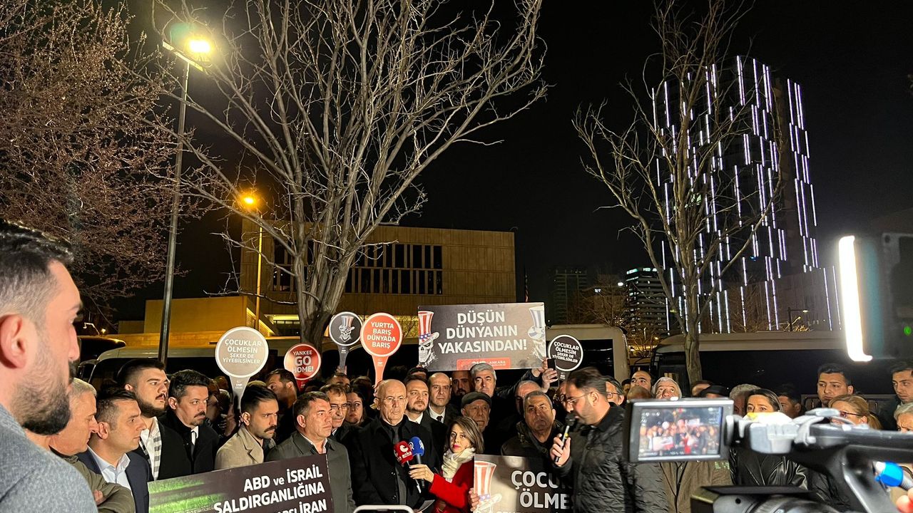 CHP Ankara İl Başkanlığı, ABD Büyükelçiliği önünde, İsrail ve ABD’nin İran’a gerçekleştirdiği saldırılara yönelik basın açıklamasında bulundu.