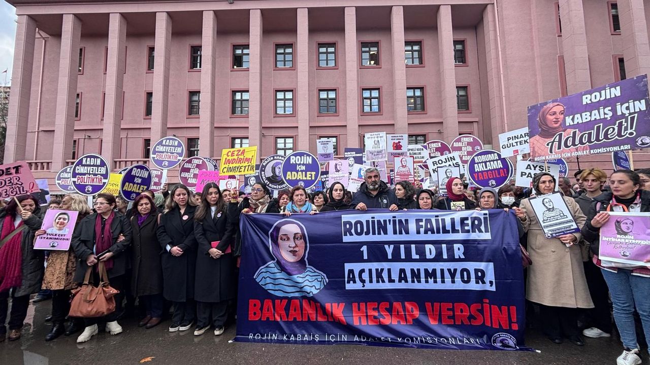 Rojin Kabaiş’in ölümünün aydınlatılması amacıyla Rojin Kabaiş İçin Adalet Komisyonları, Kabaiş’in ailesi, CHP Kadın Kolları Temsilcisi Armağan Akyüz, DEM Parti Milletvekili Çiçek Otlu, CHP Ankara Milletvekili Aylin Timisi Ersever ve birçok katılımcı bir araya gelerek Adalet Bakanlığı önünde basın açıklaması yaptı.