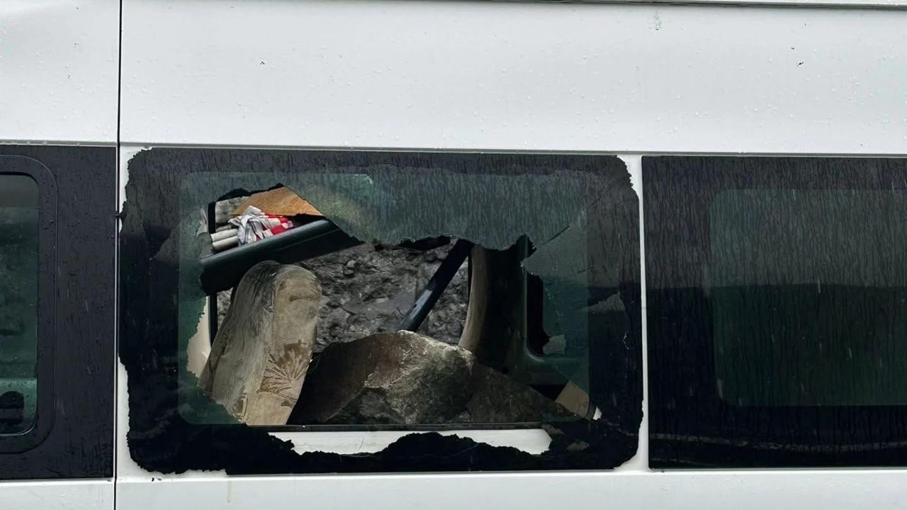Kaya, ön koltuklarında 3 kişinin bulunduğu minibüsün tavanını parçalayarak yolcu koltuğu üzerine düştü. Araçta arka koltuklarda yolcu olmaması olası can kaybı ve yaralanmamın önüne geçti.