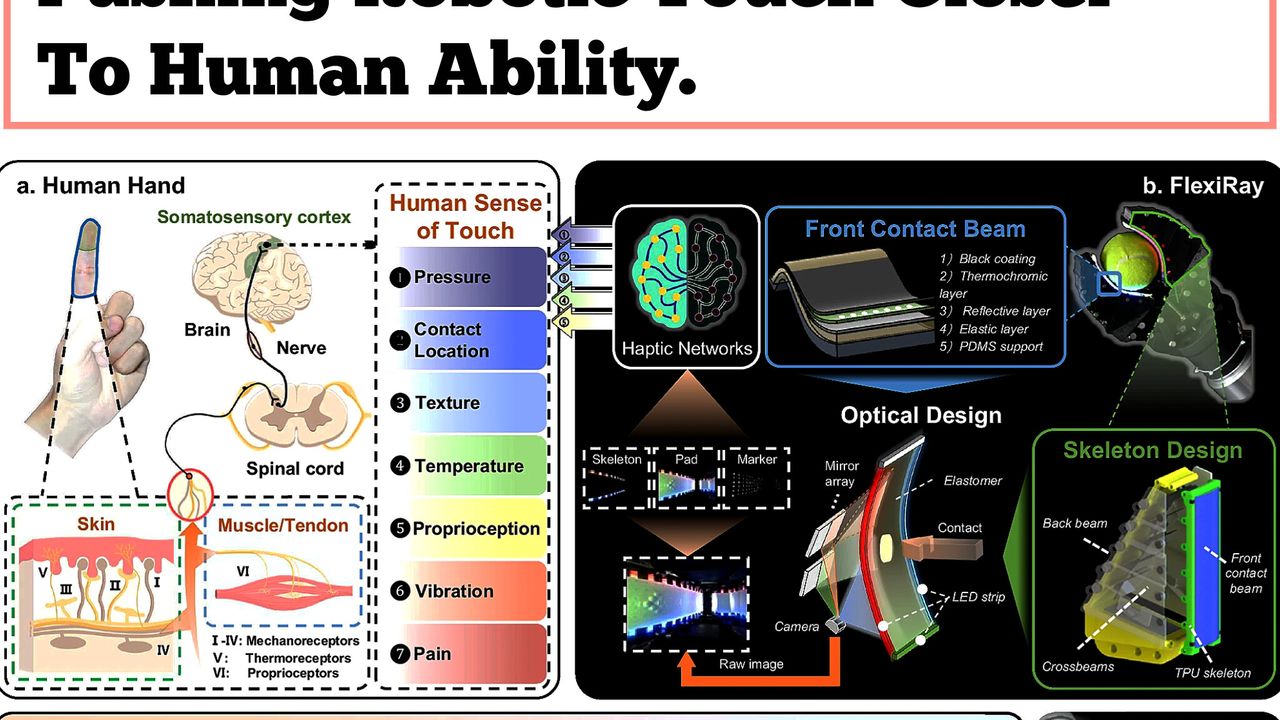 Fin Ray’den esinlenen yumuşak bir yapıya sahip olan FlexiRay, tek bir dahili kamera ve çoklu ayna optik sistemiyle çalışıyor. Bu sistem sayesinde robot, parmakların doğrudan görüş alanı dışında kalan temas noktalarını da algılayabiliyor.