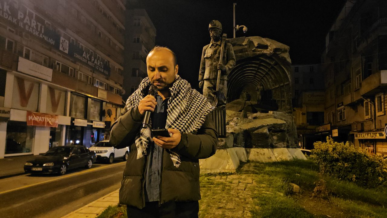 Kentte gece saatlerinde vatandaşlar, sivil toplum kuruluşlarının çağrısıyla Madenci Anıtı’nda bir araya geldi. Vatandaşlar, Gazze’ye insani yardım götüren ve sivillerden oluşan Sumud Filosu’na yönelik İsrail’in müdahalesinin ardından, tepki göstermek amacıyla eylem yaptı. Grup, İsrail aleyhine sloganlar attı.